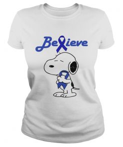 Snoopy Believe Cancer Colon Dark Blue Awareness TShirt
