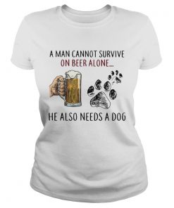 A man cannot survive on beer alone he also needs a dog shirt
