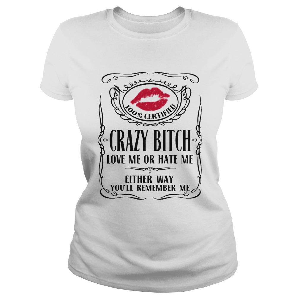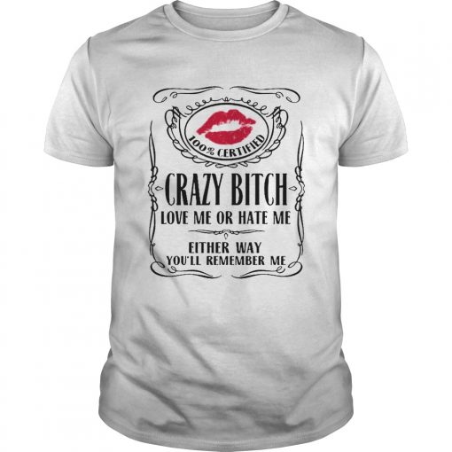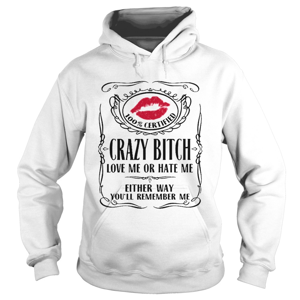 100 Certified Crazy Bitch Love Me Or Hate Me Either Way Youll Remember Me shirt, hoodie, sweater, longsleeve and ladies t-shirt