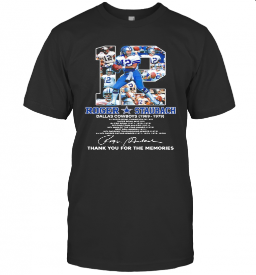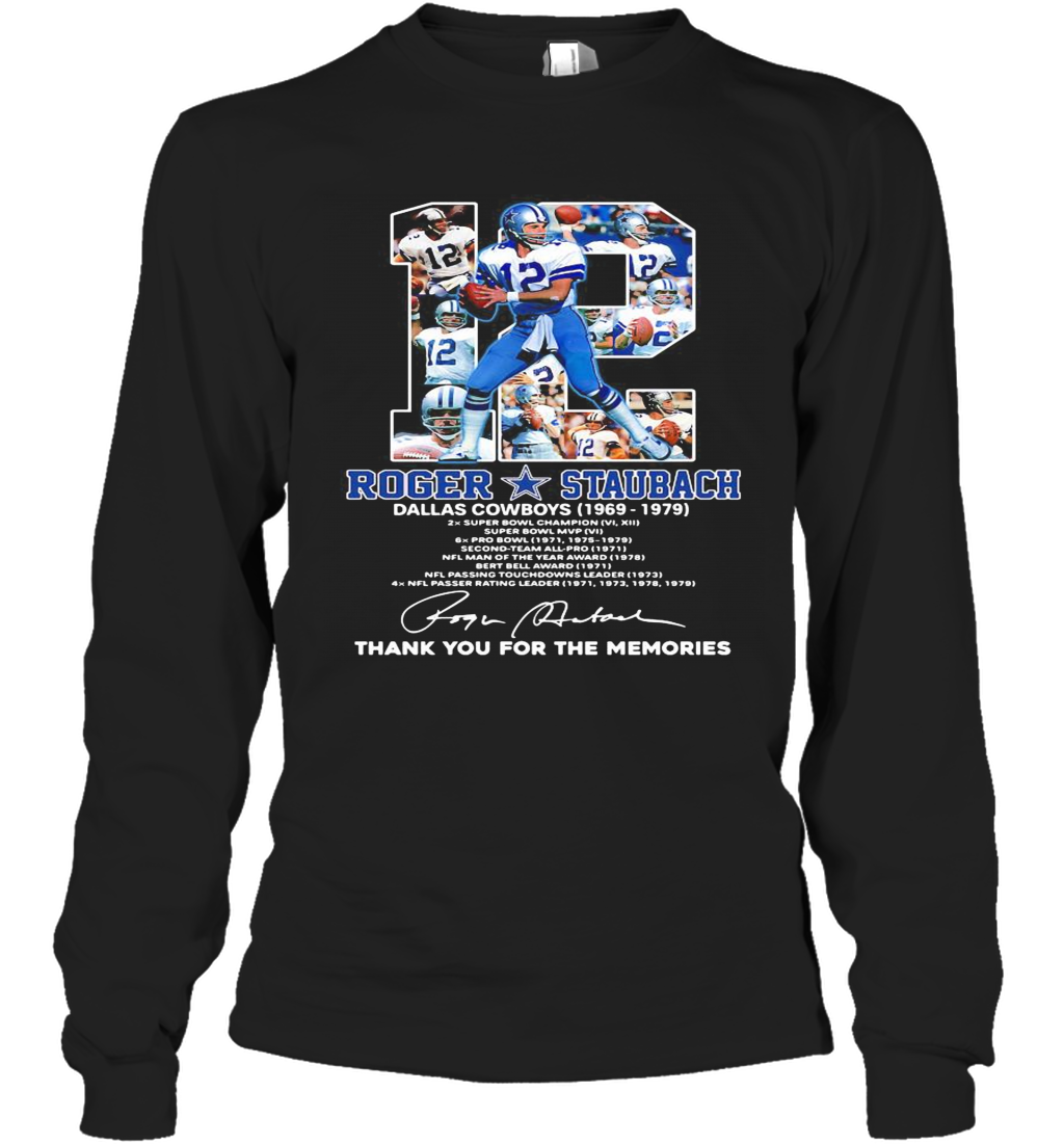 12 Roger Staubach Dallas Cowboys 1969 1979 Thank You For The Memories Signature T-Shirt, hoodie, sweater, longsleeve and ladies t-shirt