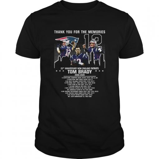 12 Tom Brady 20th Anniversary New England Patriots 2000 2020 Patriots Thank You For The Memories sh, hoodie, sweater, longsleeve and ladies t-shirt