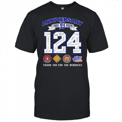 124 anniversary 1901 2025 Detroit Tigers thank you for the memories shirt, hoodie, sweater, longsleeve and ladies t-shirt