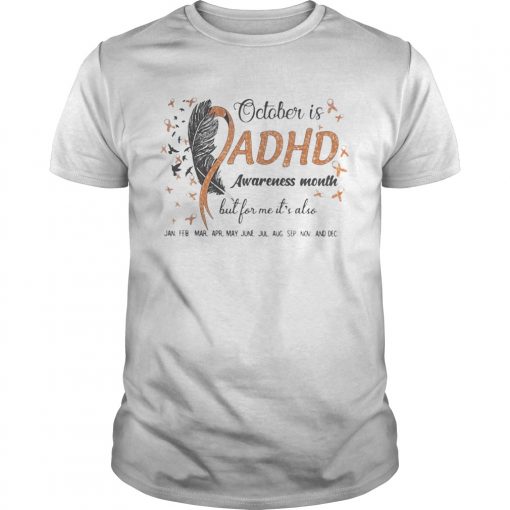 1597809656OCTOBER IS ADHD AWARENESS MONTH BUT FOR ME IT’S ALSO JAN FEB MAR APR MAY JUNE JUL AUG SEP NOV AND D, hoodie, sweater, longsleeve and ladies t-shirt