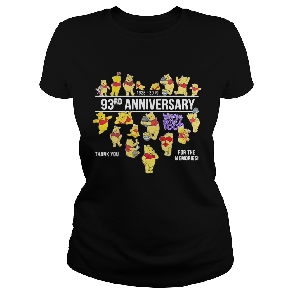 19262019 93rd anniversary Winnie the Pooh thank you for the memories shirt, hoodie, sweater, longsleeve and ladies t-shirt