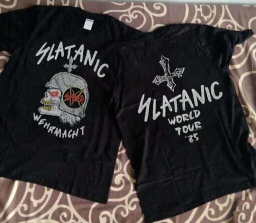 Beyond its aesthetic appeal, the 1985 Slayer Slaytanic Wehrmacht World Tour T Shirt serves as a powerful symbol of individuality and rebellion. Each thread weaves a story of defiance and passion, inviting you to embrace the untamed spirit of metal culture. Whether you’re a die-hard Slayer fan or someone looking to infuse their wardrobe with a touch of vintage edge, this shirt is a must-have addition to your collection. So, why settle for ordinary when you can don a piece of history and join the ranks of metal enthusiasts who understand that music is more than just sound—it’s a way of life? Embrace the legacy, wear it proudly, and let the world know that your spirit roars louder than thunder. Seize the opportunity to own a piece of metal history with the 1985 Slayer Slaytanic Wehrmacht World Tour T Shirt today. Unleash your inner rebel, reignite your passion for music, and make a statement that resonates with the echoes of metal’s golden age. Join the legion of fans who understand that this shirt is more than fabric—it’s a symbol of power, freedom, and the unbreakable bond that ties us all together in the symphony of metal.