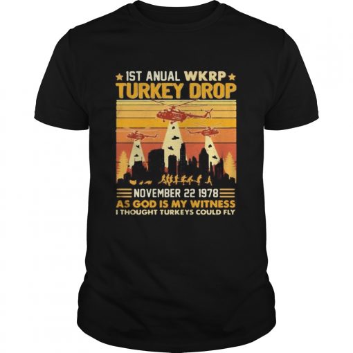 1st annual wkrp turkey drop november 22 1978 as god is my witness i thought turkeys could fly veter, hoodie, sweater, longsleeve and ladies t-shirt