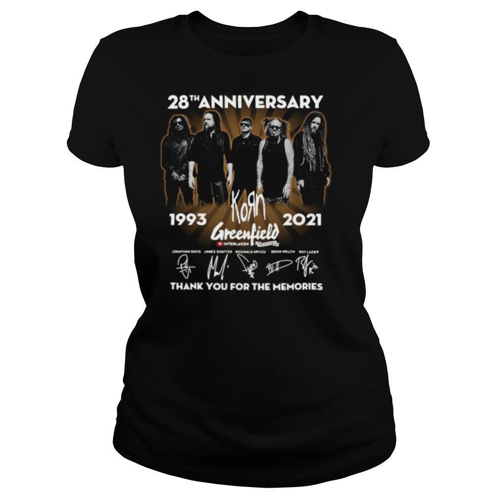 28th anniversary 1993 2021 Korn Greenfield signatures thank you for the memories shirt, hoodie, sweater, longsleeve and ladies t-shirt