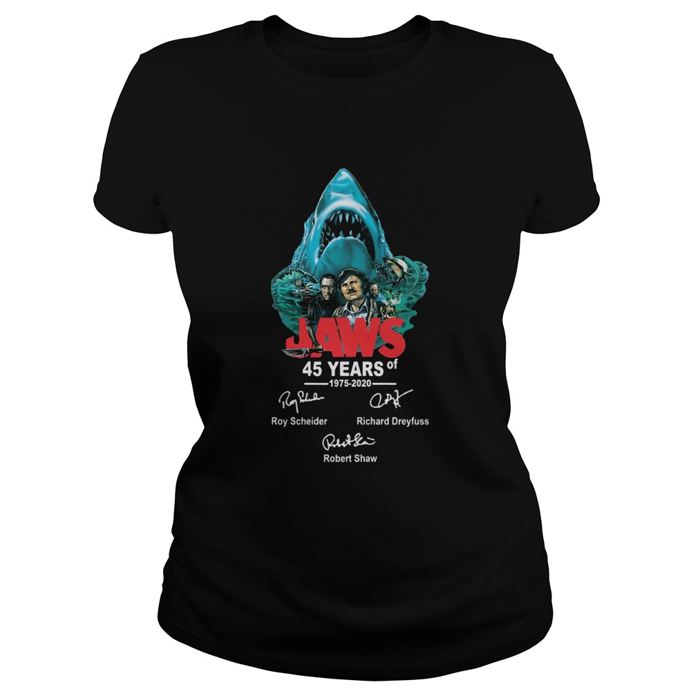 45 years of Jaws 1975 2020 signatures shirt, hoodie, sweater, longsleeve and ladies t-shirt
