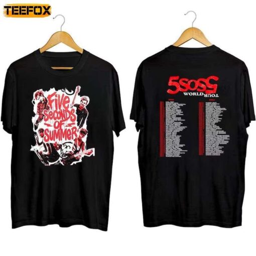 Are you ready to showcase your love for 5 Seconds Of Summer with our exclusive 5 Seconds Of Summer World Tour 2023-2024 Concert Band Short-Sleeve T-Shirt? This shirt is not just a piece of clothing; it’s a statement, a connection to the electrifying energy of a live concert experience. Imagine yourself in the midst of a sea of fans, the music pulsating through your veins, and the band rocking the stage. This t-shirt encapsulates that feeling, bringing the concert vibes wherever you go. The design features bold graphics that capture the essence of the band’s world tour, making it a perfect choice for any die-hard fan looking to relive those unforgettable moments.
