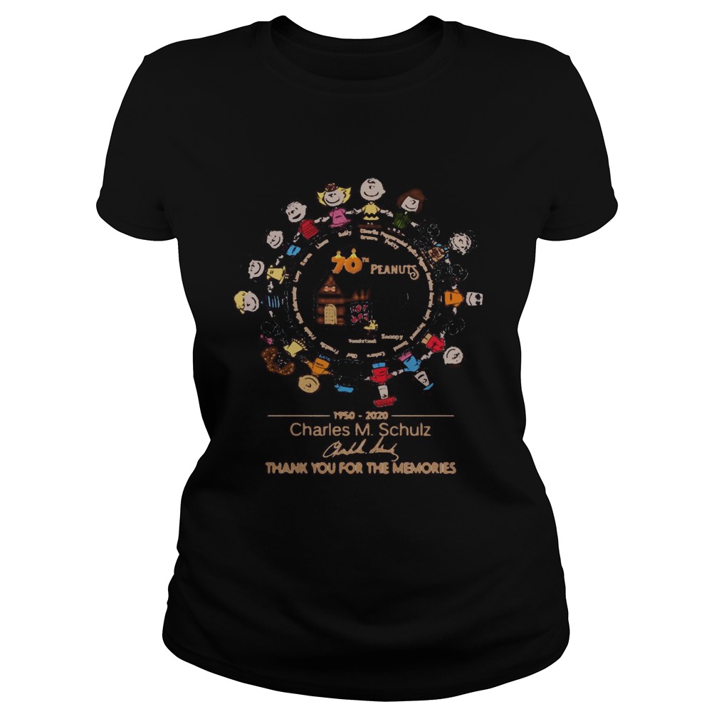70th the peanuts 1950 2020 charles m schulz thank you for the memories signature shirt, hoodie, sweater, longsleeve and ladies t-shirt