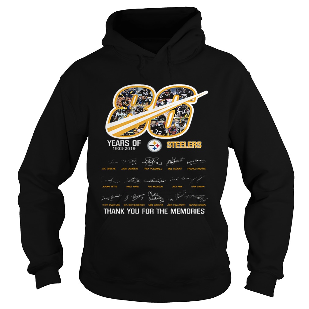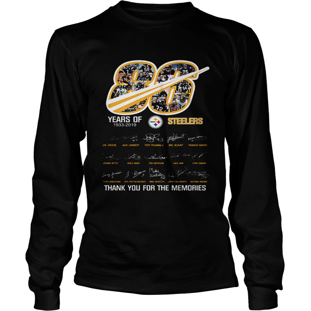 86 years of 19332019 Steelers thank you for the memories shirt, hoodie, sweater, longsleeve and ladies t-shirt