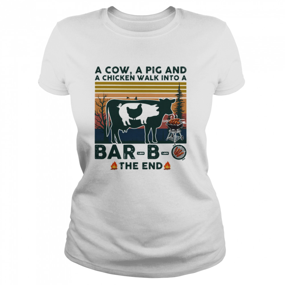 A Cow A Pig And A Chicken Walk into A Bar – B – O The End Vintage shirt, hoodie, sweater, longsleeve and ladies t-shirt