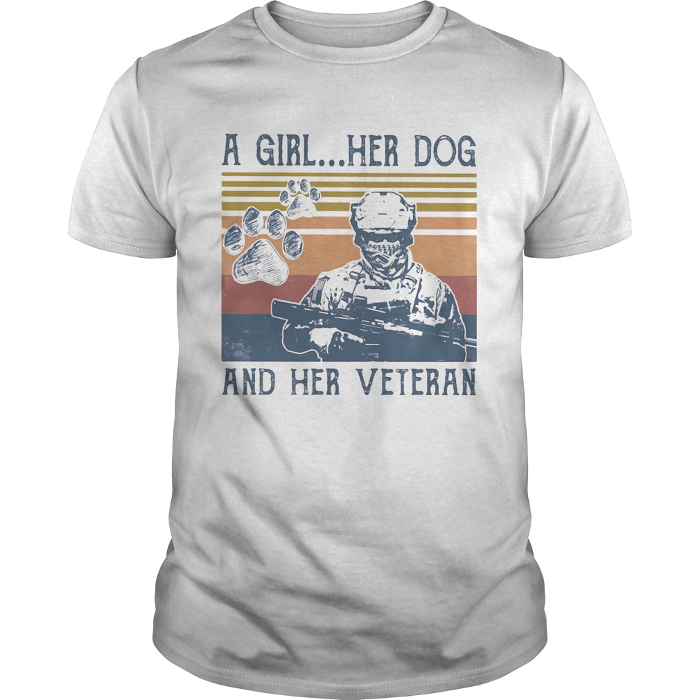 A girl her dog an her veteran footprint vintage retro shirt, hoodie, sweater, longsleeve and ladies t-shirt
