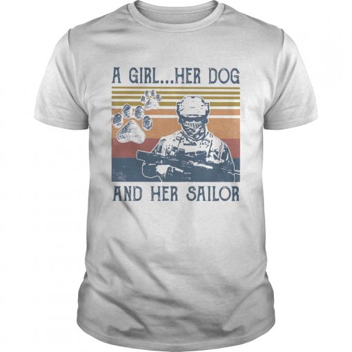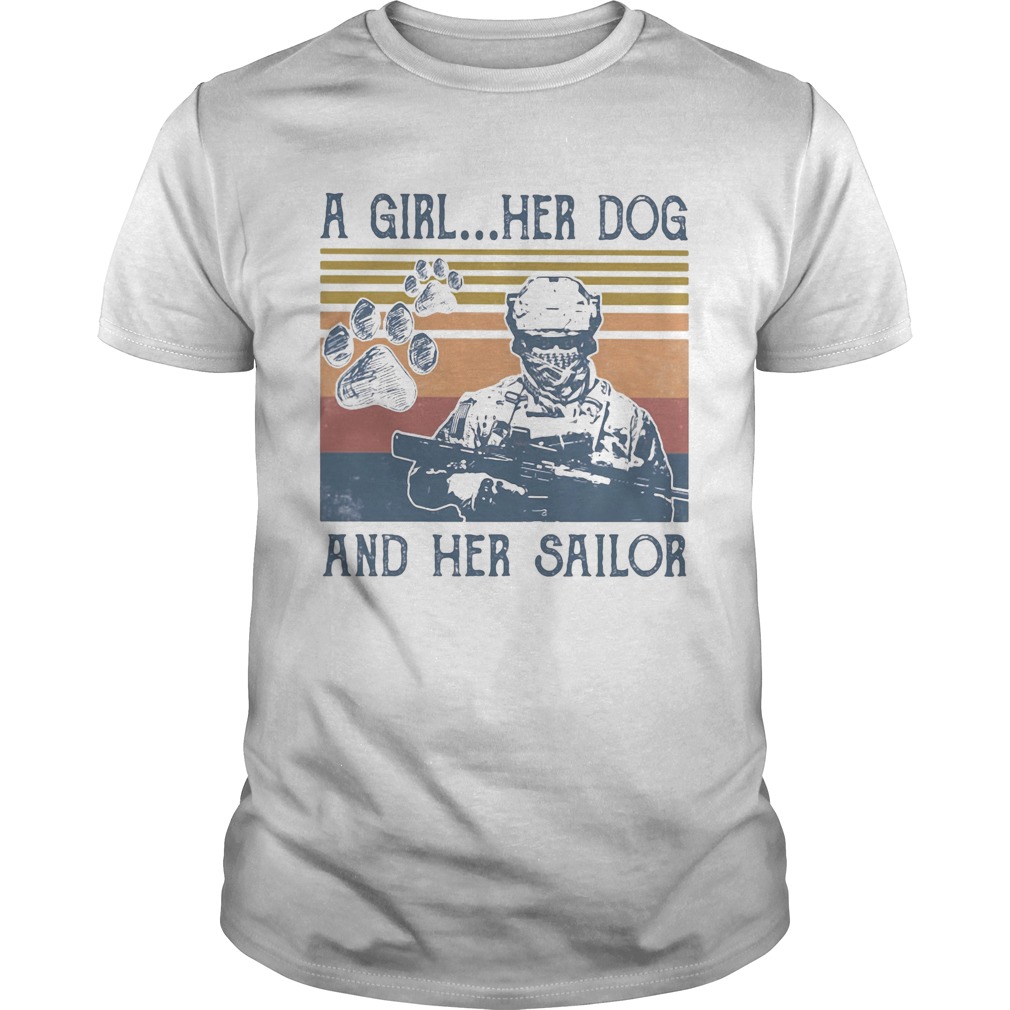 A girl her dog and her sailor footprint vintage retro shirt, hoodie, sweater, longsleeve and ladies t-shirt