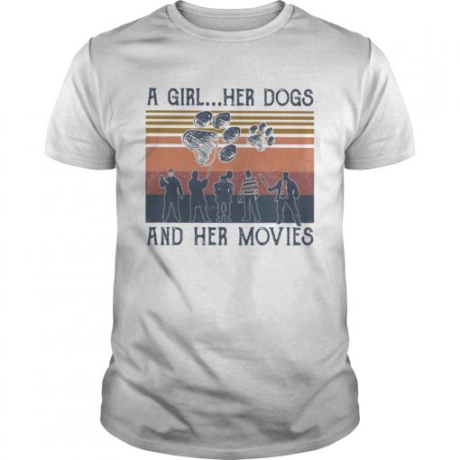 A girl her paw dog and her movies vintage retro shirt, hoodie, sweater, longsleeve and ladies t-shirt
