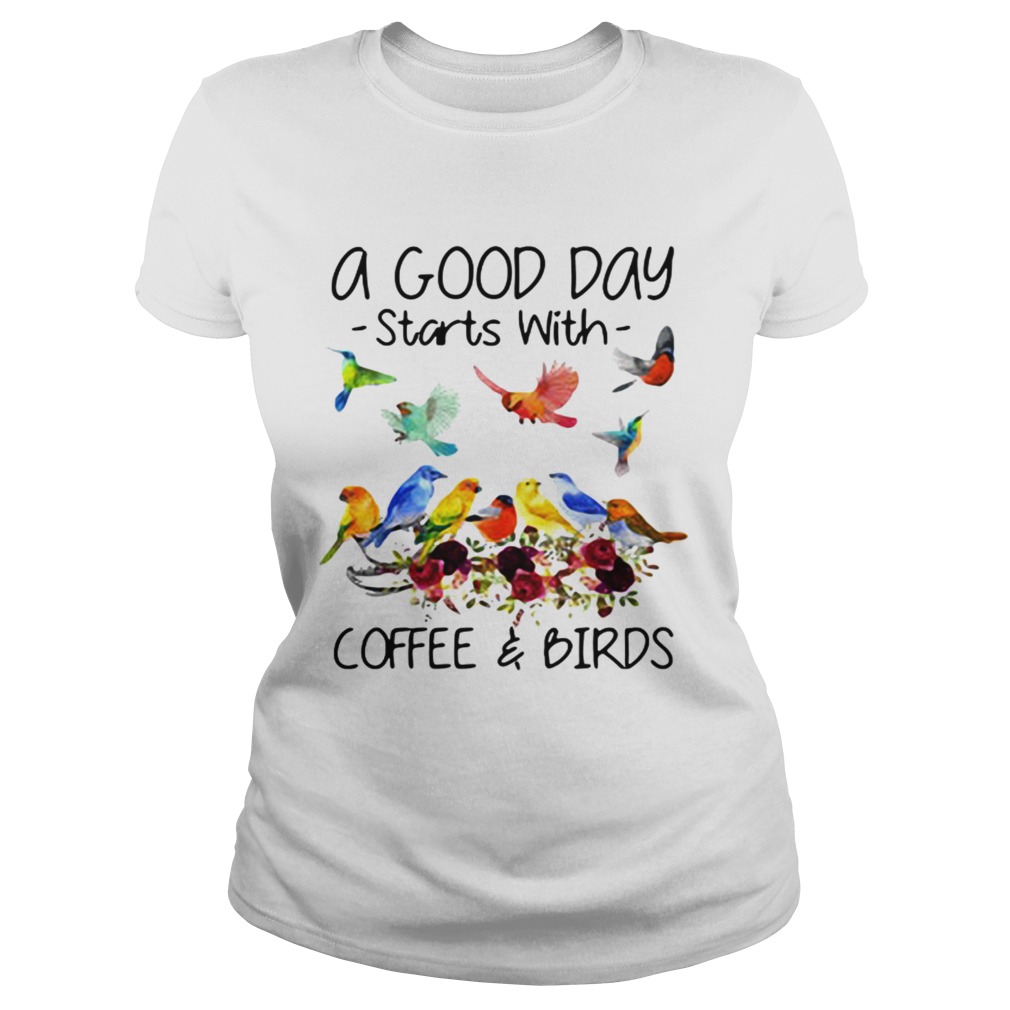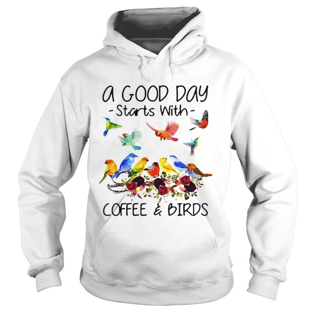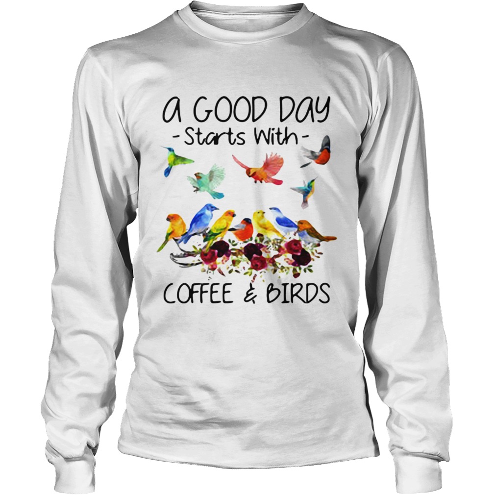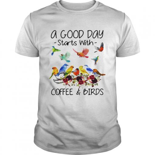 A good day starts with coffee and birds shirt, hoodie, sweater, longsleeve and ladies t-shirt
