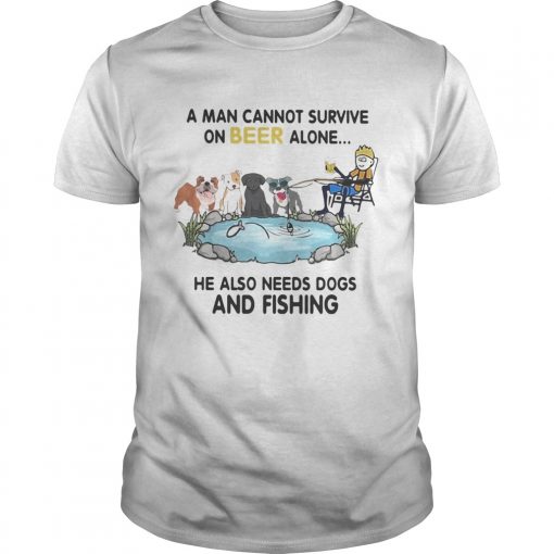 A man cannot survive on beer alone he also needs a dog and fishing shirt, hoodie, sweater, longsleeve and ladies t-shirt