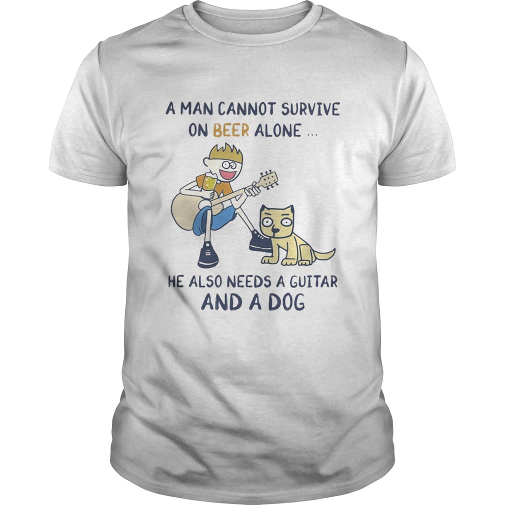 A man cannot survive on beer alone he also needs a guitar and fishing shirt, hoodie, sweater, longsleeve and ladies t-shirt