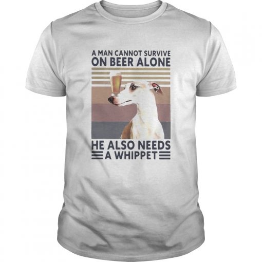 A man cannot survive on beer alone he also needs a whippet vintage retro shirt, hoodie, sweater, longsleeve and ladies t-shirt