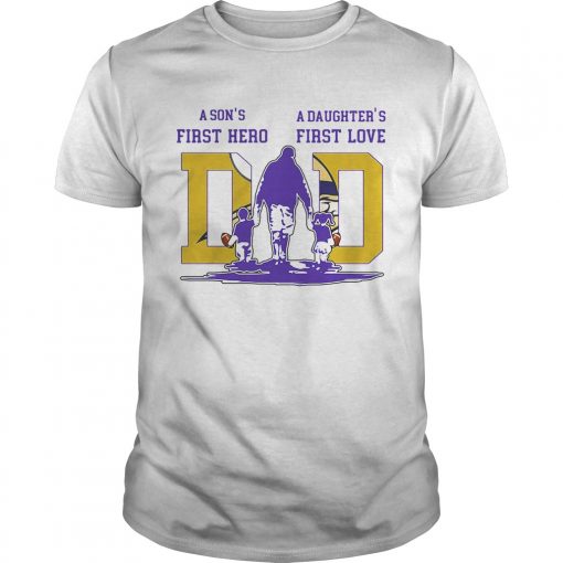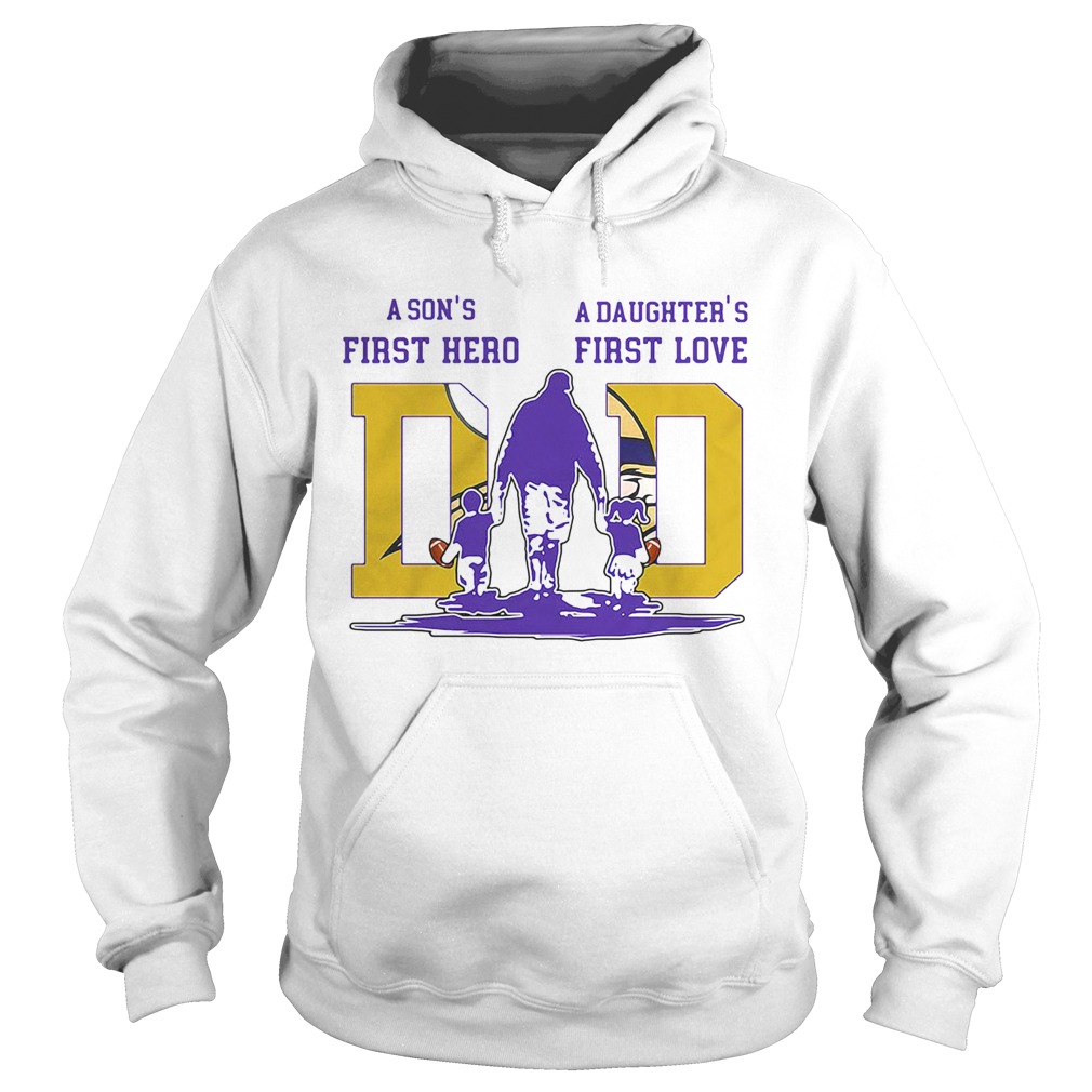 A sons first hero a daughters first love minnesota vikings football happy fathers day shirt, hoodie, sweater, longsleeve and ladies t-shirt