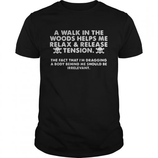 A walk in the woods helps me relax and release tension the fact that Im dragging abody behind me shirt, hoodie, sweater, longsleeve and ladies t-shirt