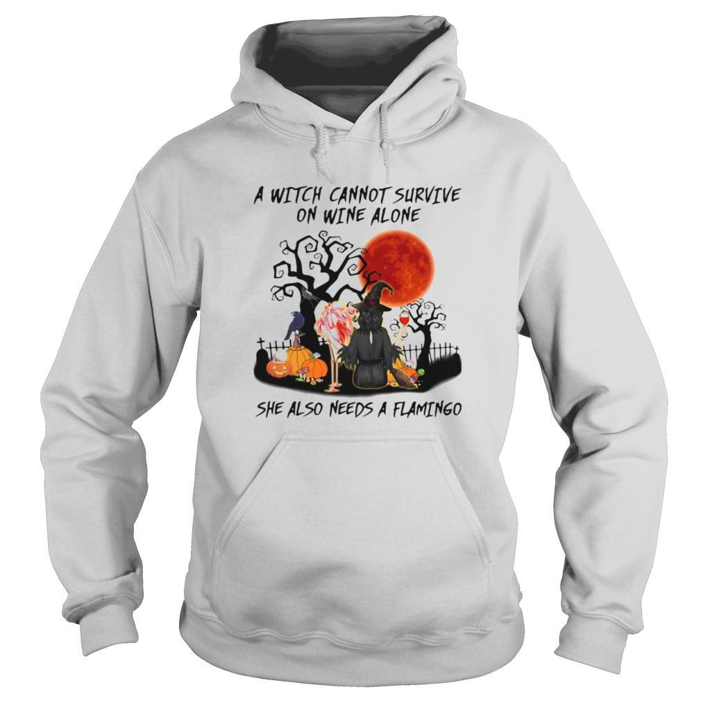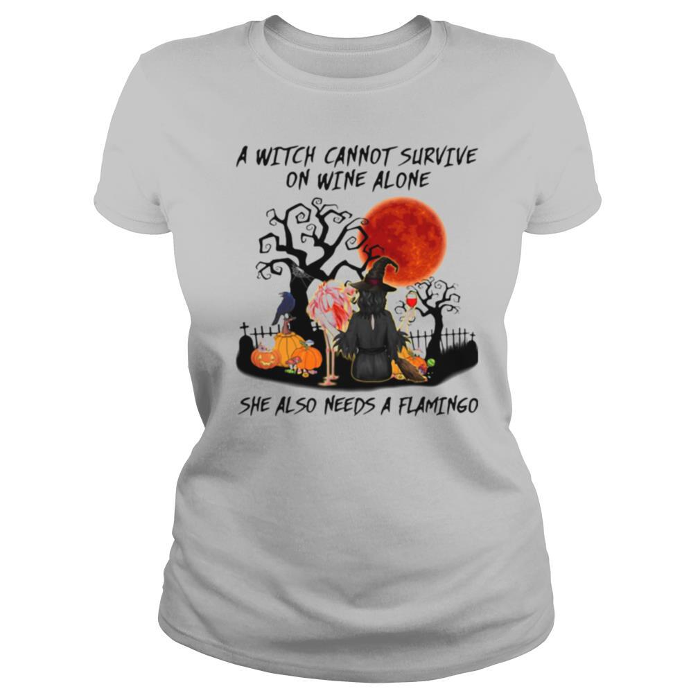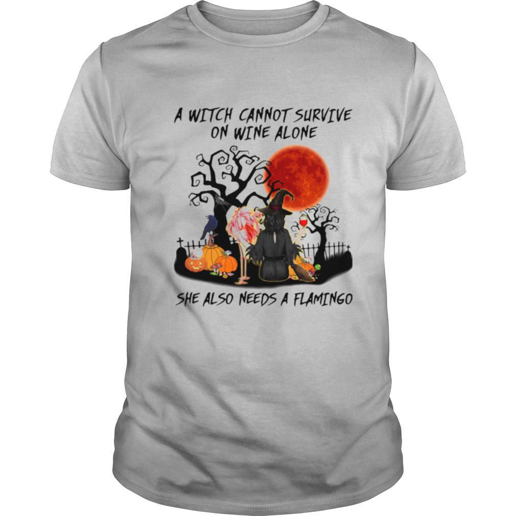 A Witch Cannot Survive On Wine Alone She Also Needs A Flamingo shirt, hoodie, sweater, longsleeve and ladies t-shirt