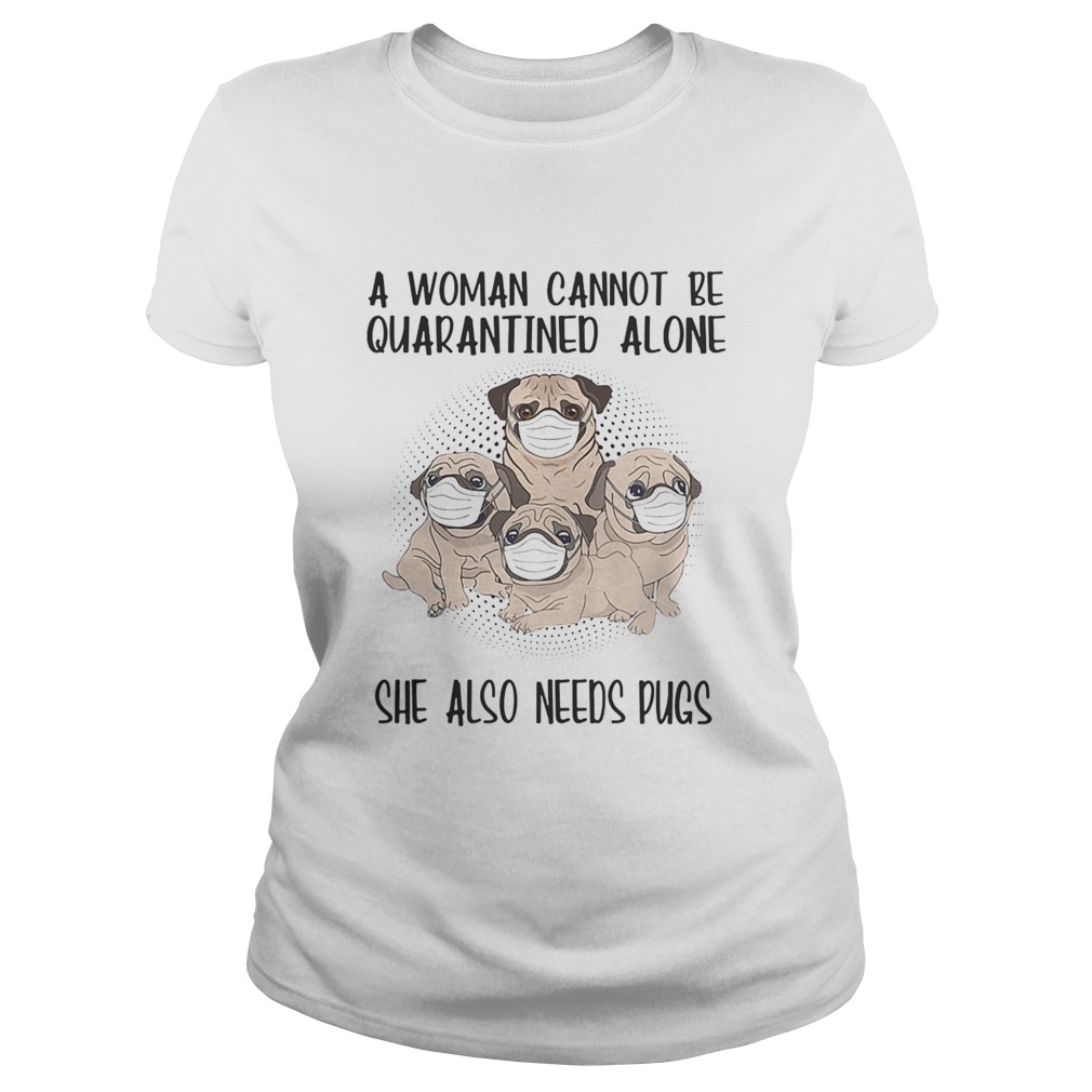 A woman cannot be quarantined alone she also needs pugs covid19 shirt, hoodie, sweater, longsleeve and ladies t-shirt