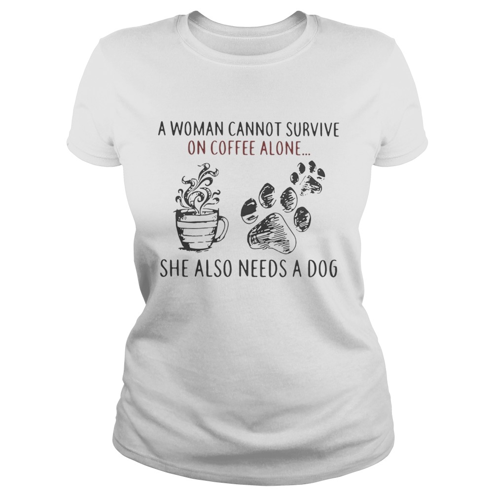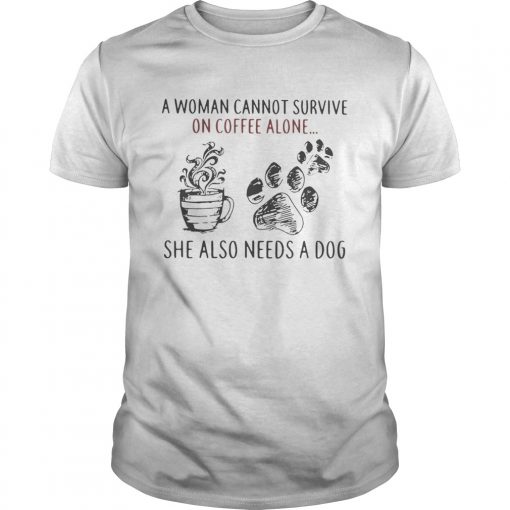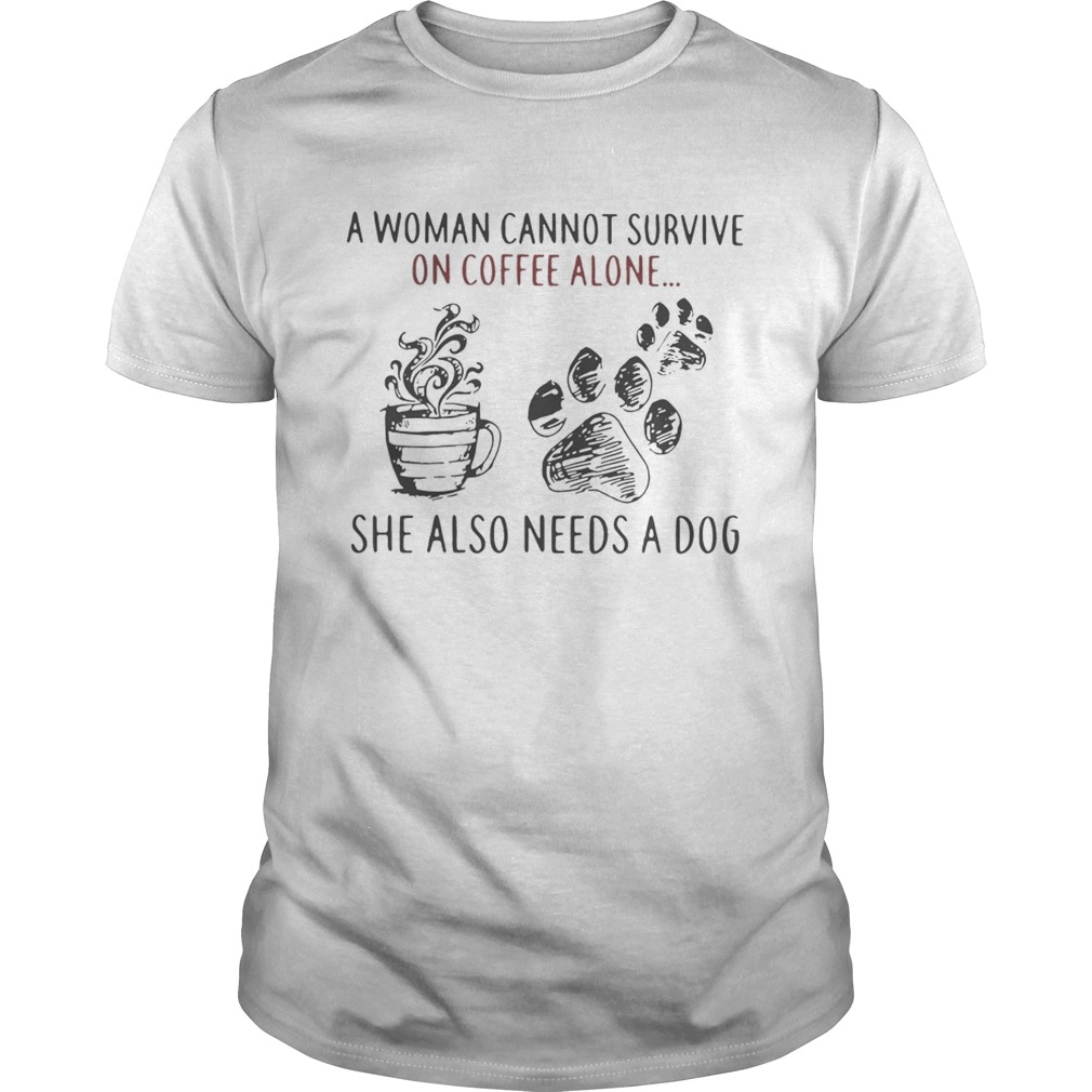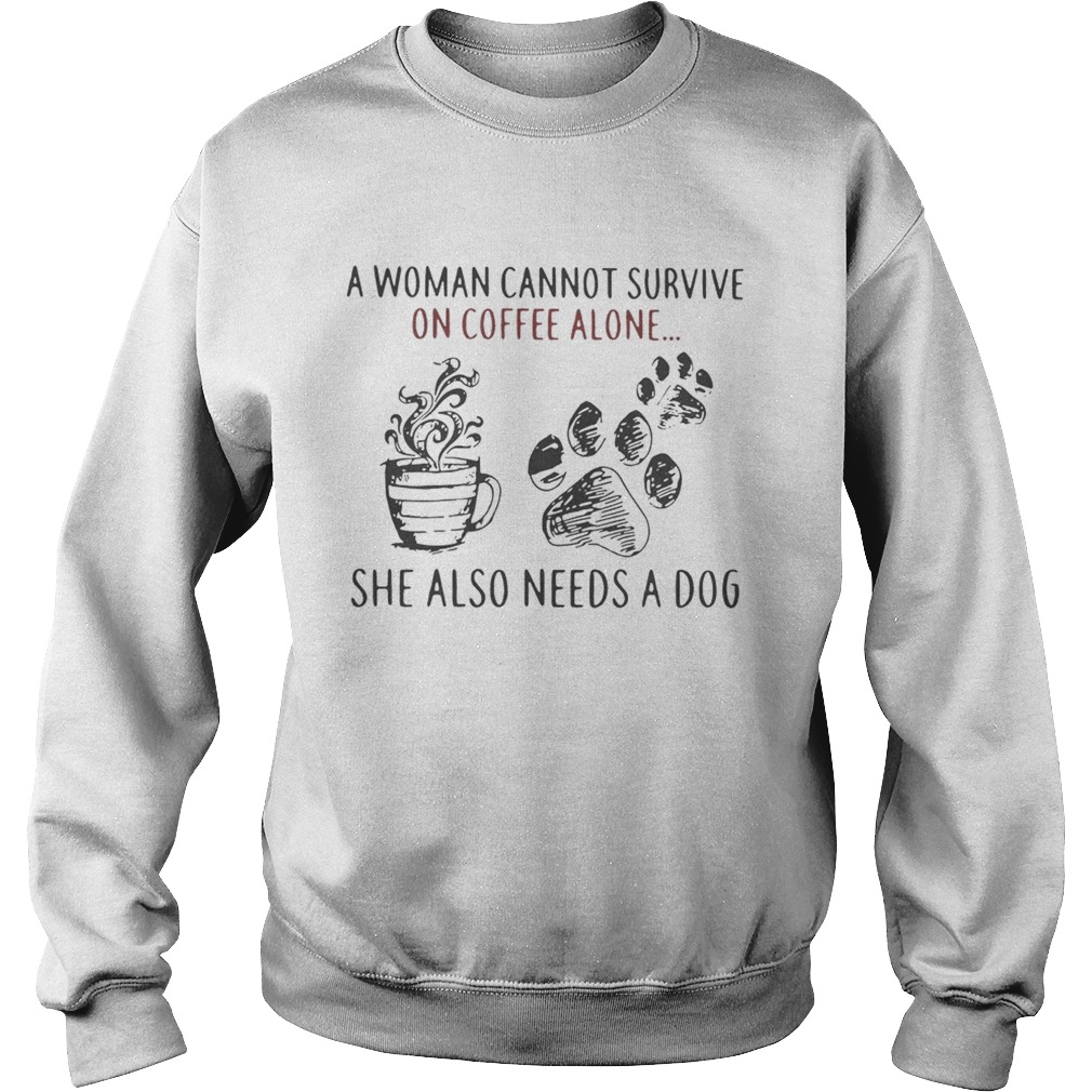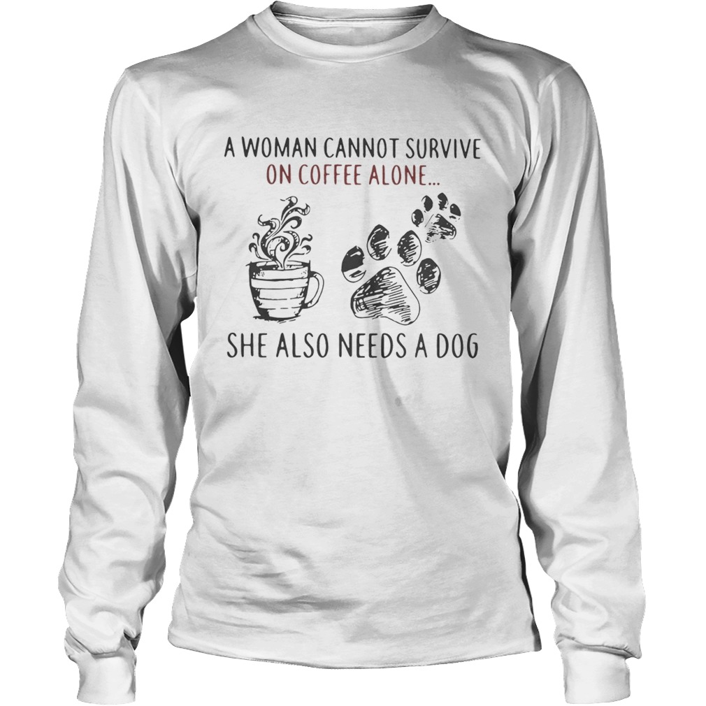 A woman cannot survive on coffee alone she also needs a dog shirt, hoodie, sweater, longsleeve and ladies t-shirt