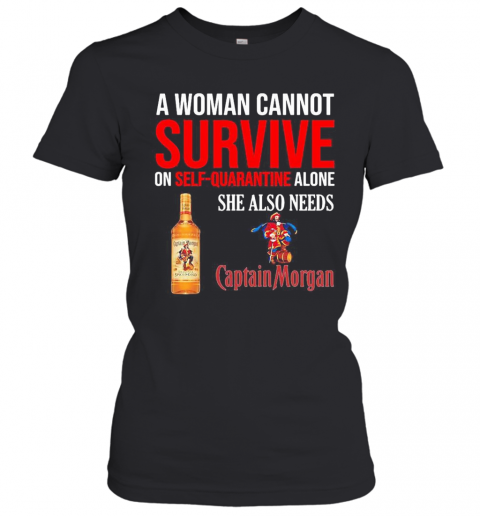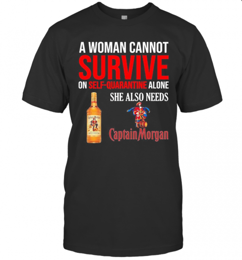 A Woman Cannot Survive On Self Quarantine Alone She Also Needs Captain Morgan T-Shirt, hoodie, sweater, longsleeve and ladies t-shirt