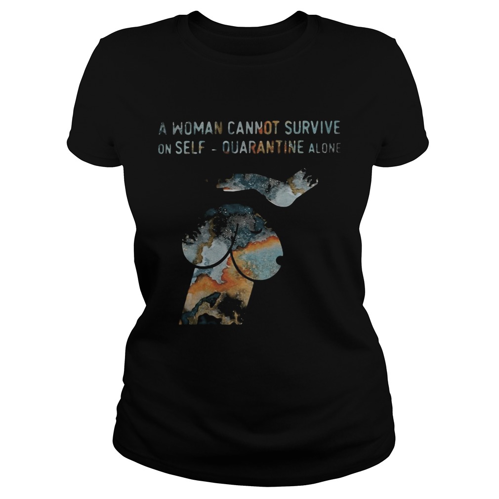A woman cannot survive on self quarantine alone shirt, hoodie, sweater, longsleeve and ladies t-shirt