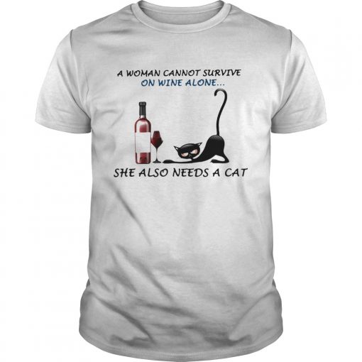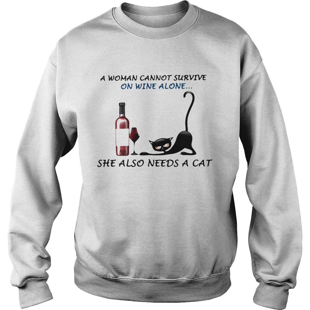 A woman cannot survive on wine alone she also needs a cat shirt, hoodie, sweater, longsleeve and ladies t-shirt