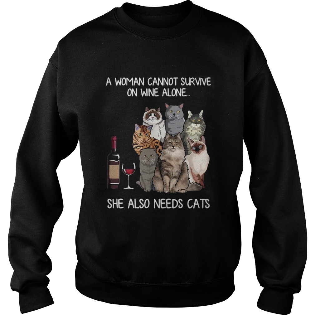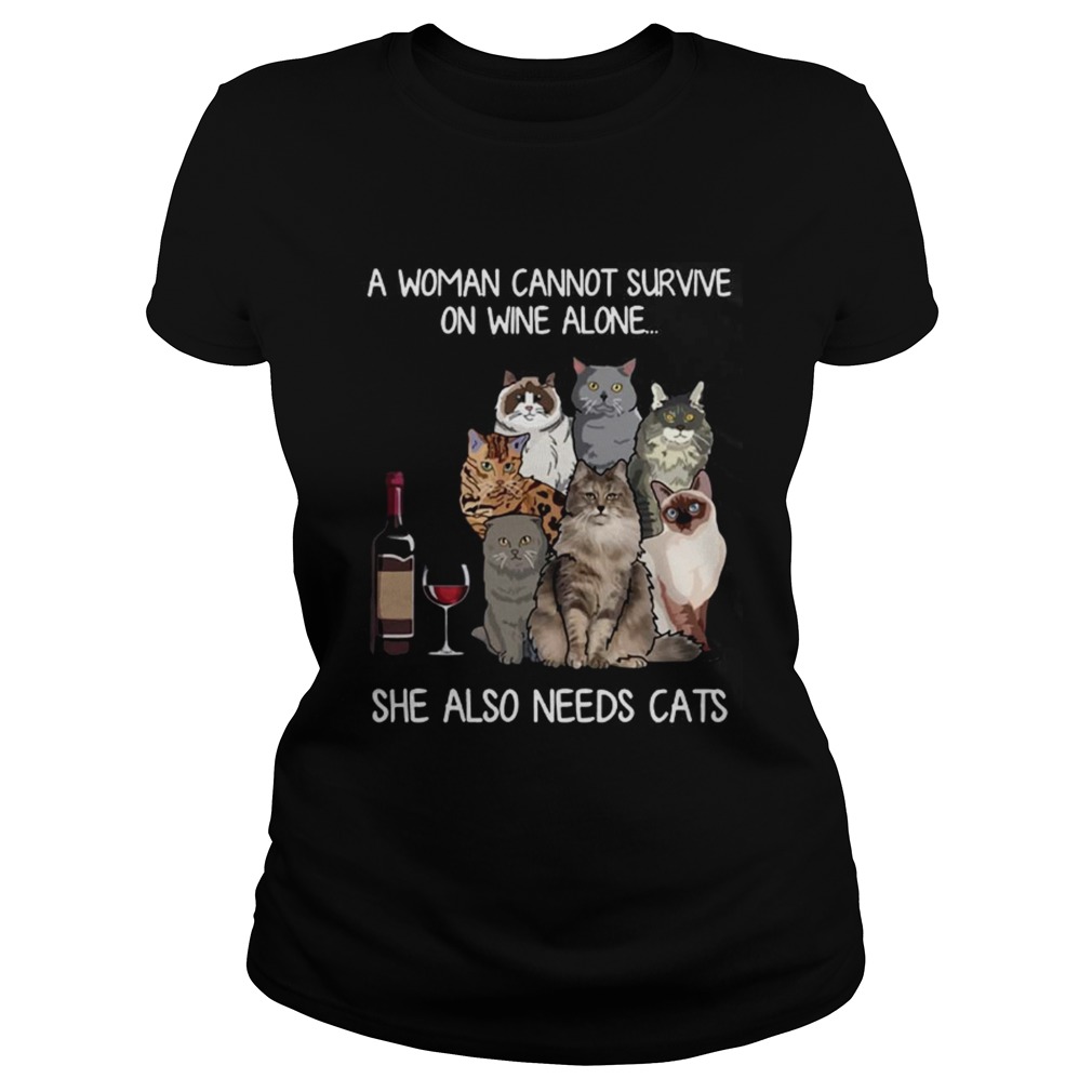 Best A woman cannot survive on wine alone she also needs a cats shirt