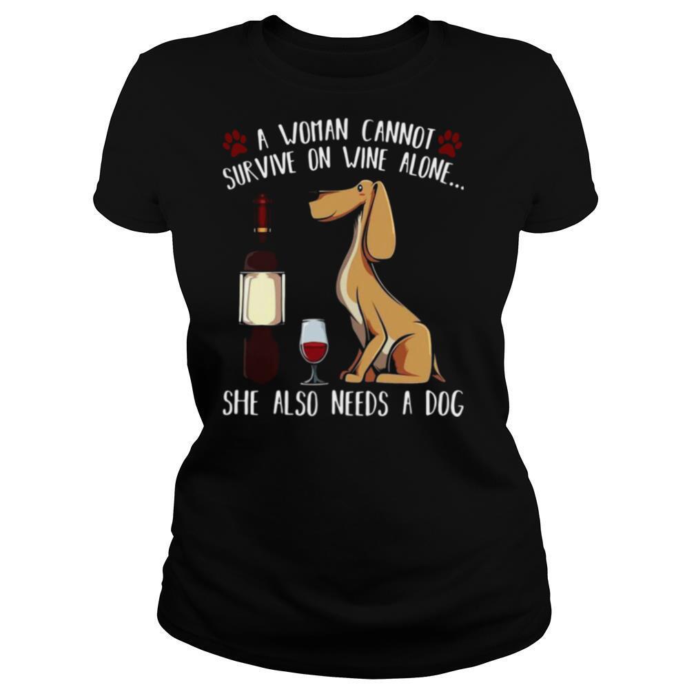 A Woman Cannot Survive On Wine Alone She Also Needs A Dog shirt, hoodie, sweater, longsleeve and ladies t-shirt