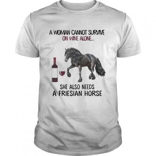 A woman Cannot survive on wine alone she also needs a friesian Horse shirt, hoodie, sweater, longsleeve and ladies t-shirt