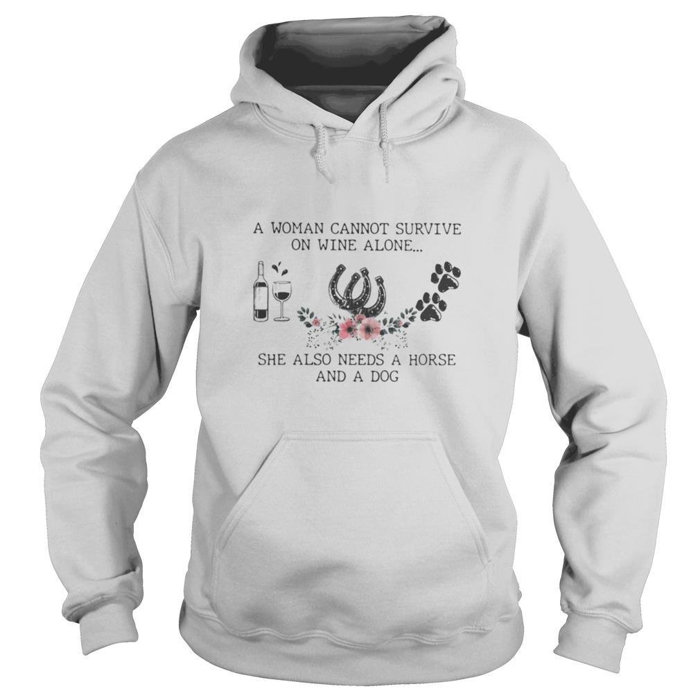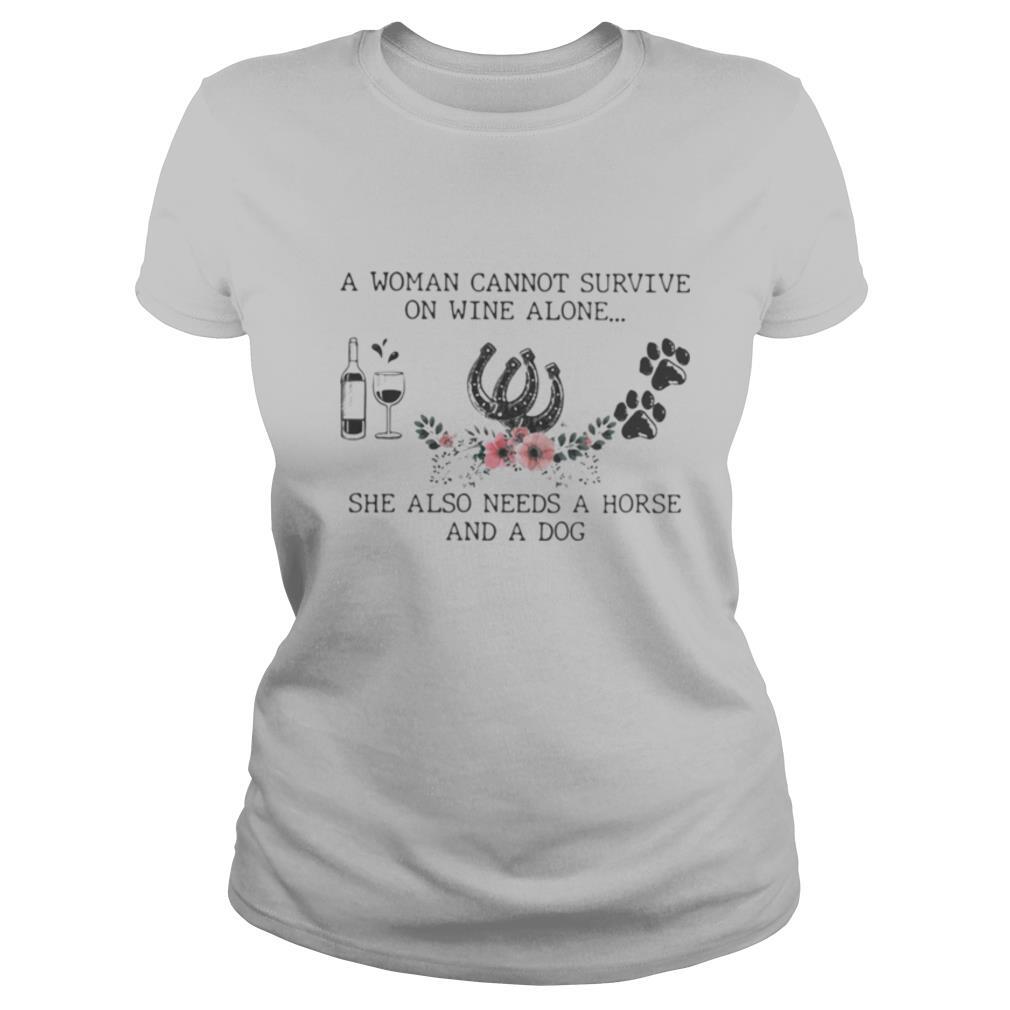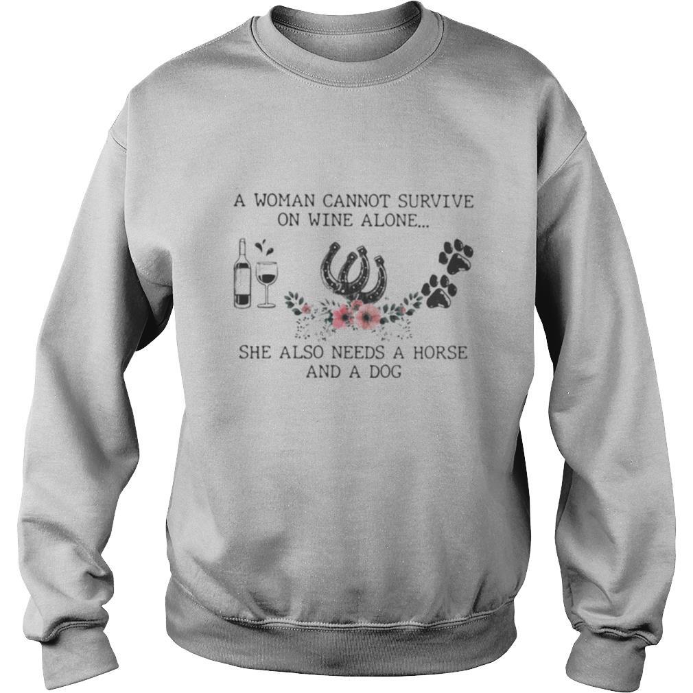A Woman Cannot Survive On Wine Alone She Also Needs A Horse And A Dog shirt, hoodie, sweater, longsleeve and ladies t-shirt
