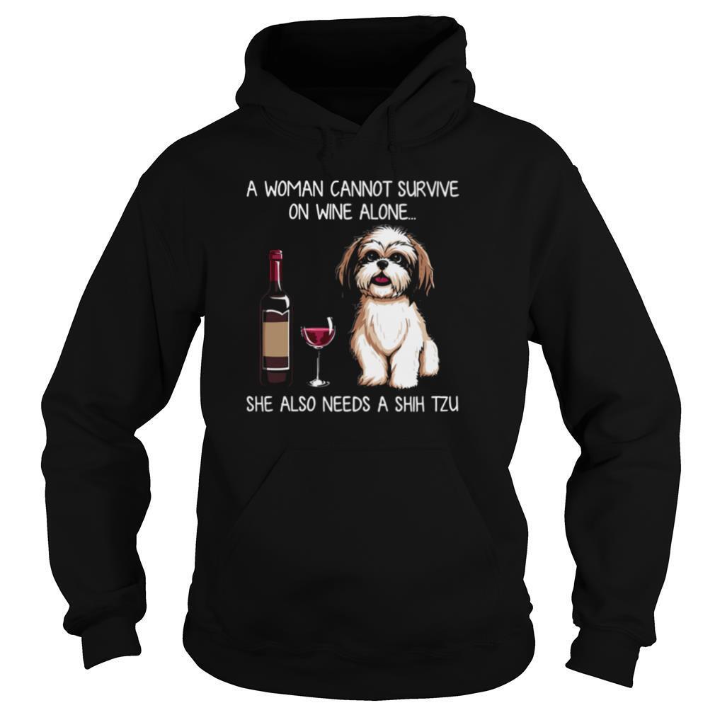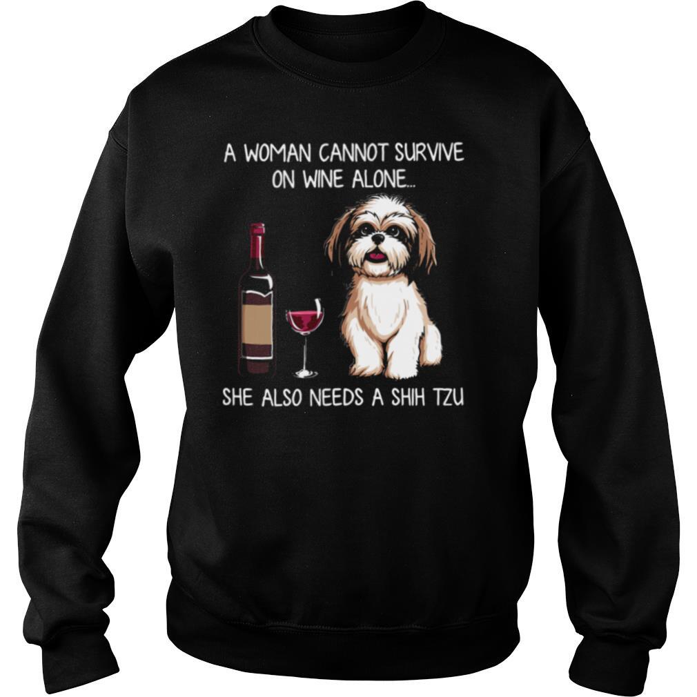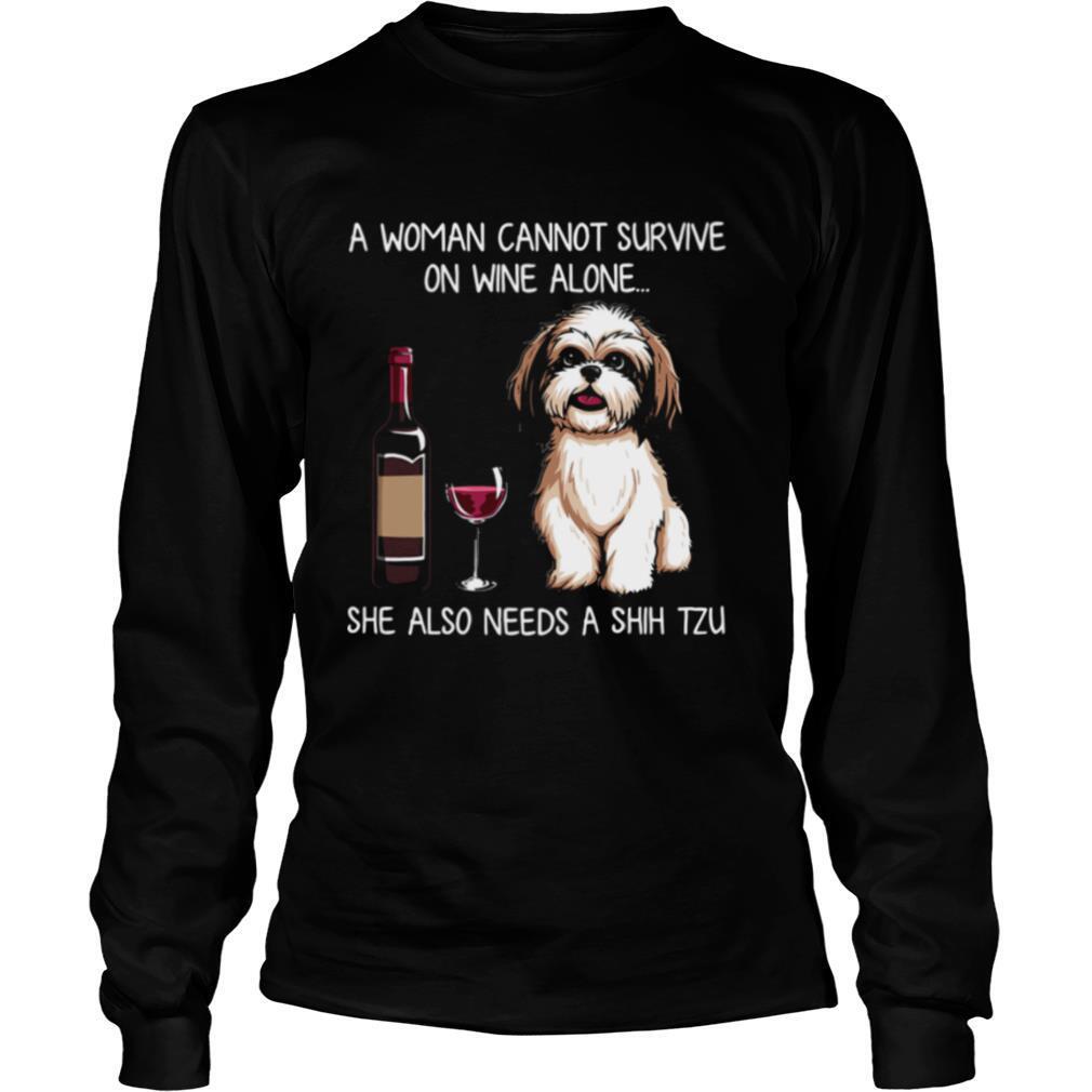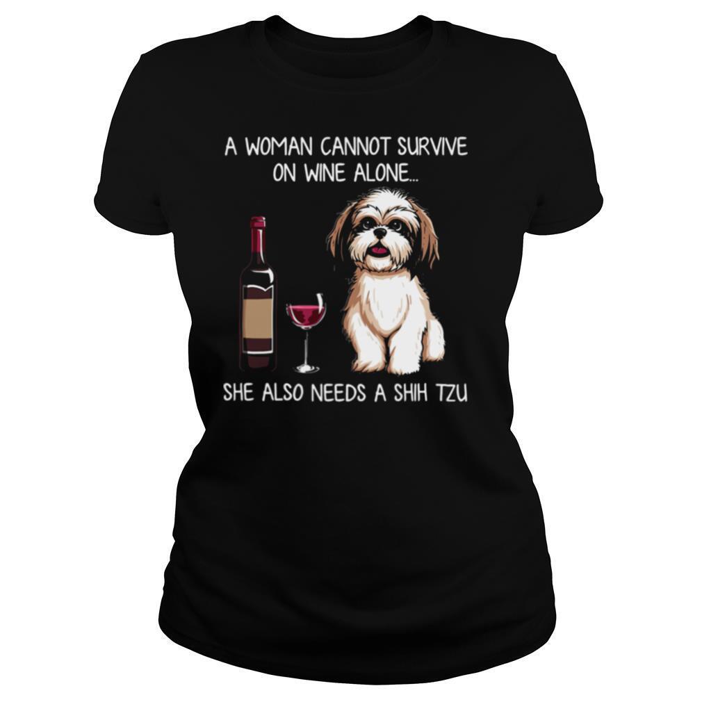 A Woman Cannot Survive On Wine Alone She Also Needs A Shih Tzu shirt, hoodie, sweater, longsleeve and ladies t-shirt