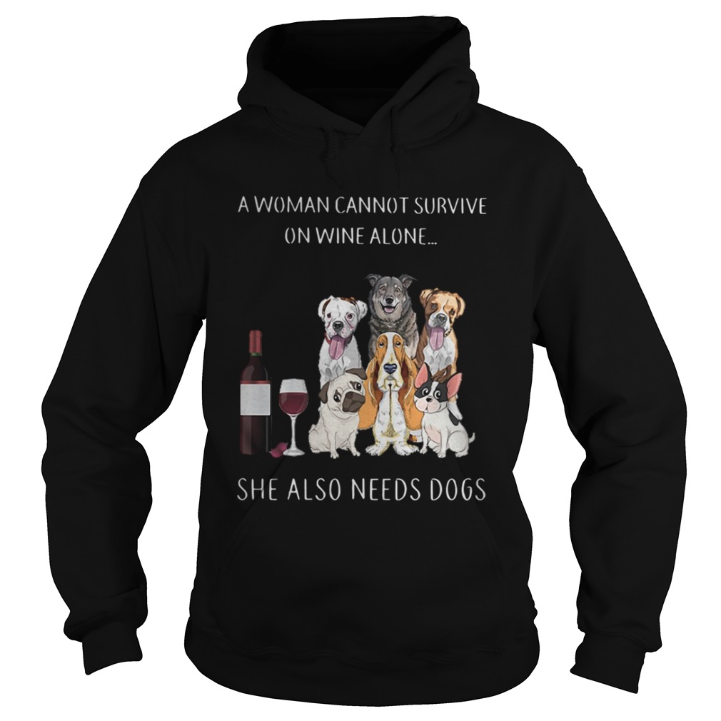 Best A woman cannot survive on wine alone she also needs dogs shirt