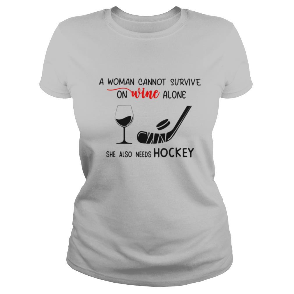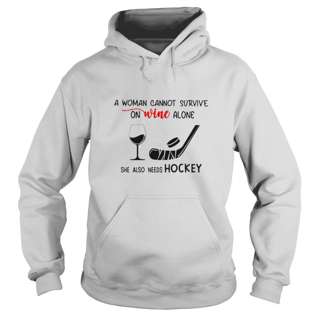 A Woman Cannot Survive On Wine Alone She Also Needs Hockey shirt, hoodie, sweater, longsleeve and ladies t-shirt
