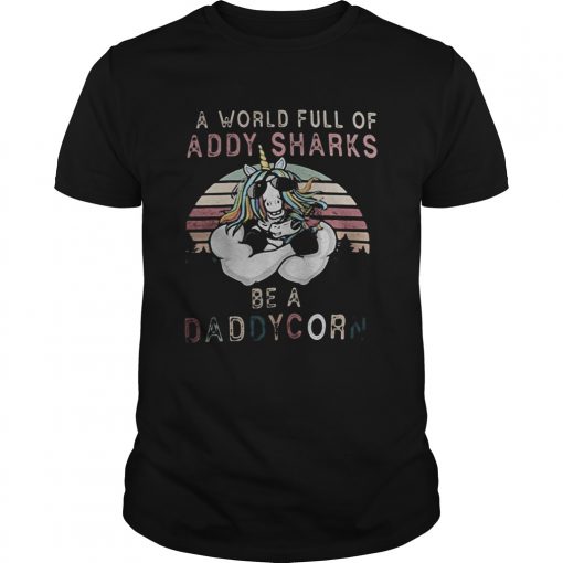 A world full of daddy sharks be a daddycorn vintage shirt, hoodie, sweater, longsleeve and ladies t-shirt