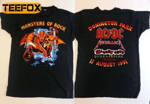 As you slip into the **ACDC Monsters Of Rock Tour Donington Park 1991 T-Shirt**, you’re not just getting dressed; you’re making a statement. This isn’t just another t-shirt; it’s a symbol of rebellion, of unapologetic self-expression, of a time when music was more than just sound—it was a way of life. With its comfortable fabric and vintage-inspired design, this shirt is more than a piece of clothing; it’s a tribute to the enduring spirit of rock music. So, if you’re ready to unleash your inner rocker, to channel the raw energy of AC/DC’s unforgettable show, then don’t hesitate. Grab your **ACDC Monsters Of Rock Tour Donington Park 1991 T-Shirt** now and let the music play on!
