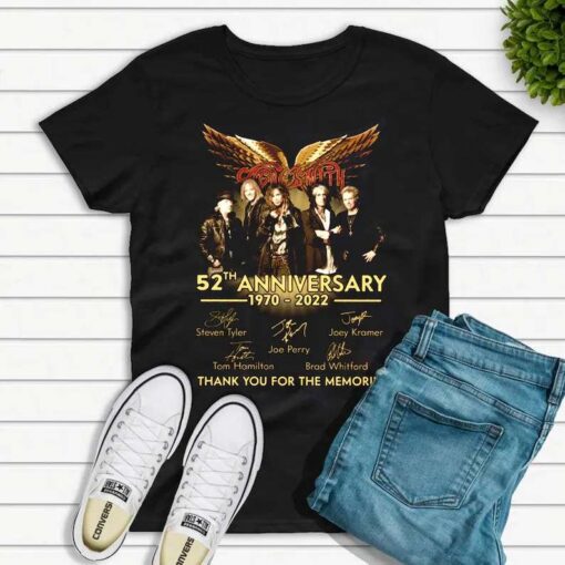 The design of this Aerosmith 52th Anniversary 1970-2022 Signatures T-Shirt Band Music Merch is a true homage to the band’s legacy. The signatures of the band members emblazoned on the front serve as a badge of honor for every fan who has been touched by Aerosmith’s music. The high-quality fabric ensures comfort, while the stylish cut and fit make it a versatile piece for any occasion. This t-shirt is not just a garment; it’s a symbol of your passion for music and an expression of your rock ‘n’ roll soul. So why settle for ordinary when you can rock out in style with this exclusive Aerosmith anniversary merch?