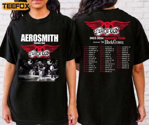 Are you ready to rock in style with the Aerosmith Peace Out Farewell Tour with The Black Crowes 2023-2024 Short-Sleeve T-Shirt? This iconic tee is not just a piece of clothing; it’s a statement, a piece of music history that you can wear proudly. Imagine the energy of an Aerosmith concert, the electric atmosphere, the timeless tunes that resonate in your soul. This shirt encapsulates that spirit, the essence of rock ‘n’ roll rebellion, and the camaraderie of music lovers coming together to celebrate legends. Whether you’re heading to a gig, hanging out with friends, or simply want to infuse your wardrobe with rockstar vibes, this tee is your perfect companion.