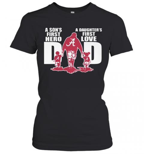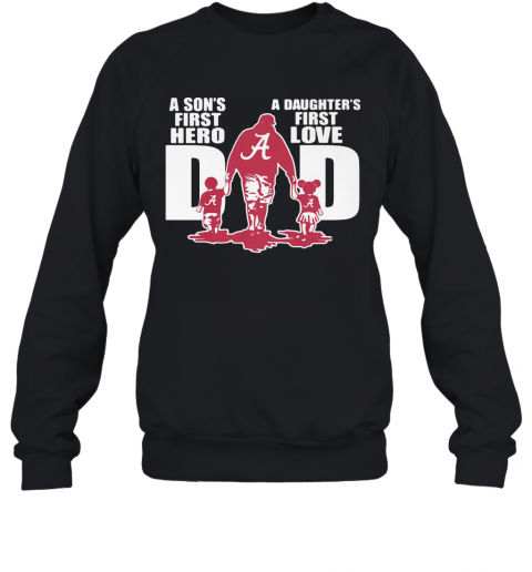 Alabama Crimson Tide A Son’S First Hero A Daughter’S First Love Dad Happy Father’S Day T-Shirt, hoodie, sweater, longsleeve and ladies t-shirt
