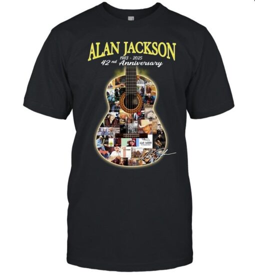 Alan Jackson 42nd Anniversary 1983–2025 Guitar Collage T-Shirt, hoodie, sweater, longsleeve and ladies t-shirt