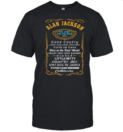 Are you ready to elevate your style and pay tribute to the legendary Alan Jackson? Don’t miss out on the opportunity to own the Alan Jackson One More for the Road 2025 Song List T-Shirt today. Step into the world of classic country music with this meticulously designed shirt that exudes charm and nostalgia. Whether you’re a long-time fan or a newcomer to Jackson’s music, this t-shirt is a timeless piece that will make you feel connected to the heart and soul of his songs. Embrace the essence of a music legend and make a bold statement wherever you go. Add this exclusive t-shirt to your wardrobe now and let your love for Alan Jackson shine through in style!