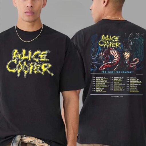 Embrace the rockstar within and make a bold statement with the Alice Cooper Too Close For Comfort Tour 2025 List Dates T-Shirt. Whether you’re a die-hard fan or simply appreciate iconic music memorabilia, this t-shirt is a must-have addition to your collection. Stand out in the crowd and let your passion for music shine through with every wear. Don’t miss out on the opportunity to own a piece of rock history. Get your hands on this limited edition t-shirt today and rock on with Alice Cooper wherever you go!