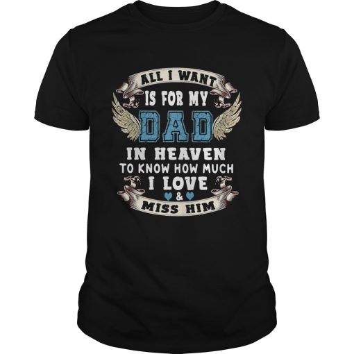 All I want is for my dad in heaven to know how much I love miss him shirt, hoodie, sweater, longsleeve and ladies t-shirt