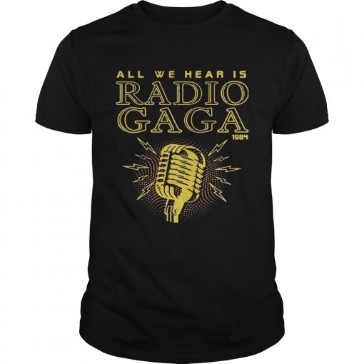 All We Hear Is Radio Gaga 1984 T-shirt, Hoodie, V-neck, Sweater, Longsleeve, Tank Top, Bella Flowy and Unisex, T-shirt