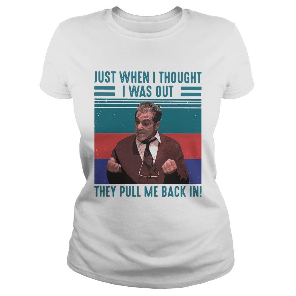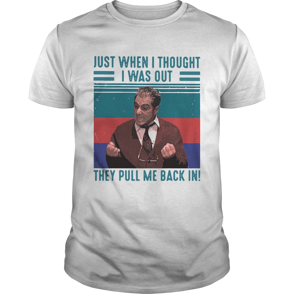 Altobello Conspiracy Just When I Thought I Was Out They Pull Me Back In Vintage Retro shirt, hoodie, sweater, longsleeve and ladies t-shirt