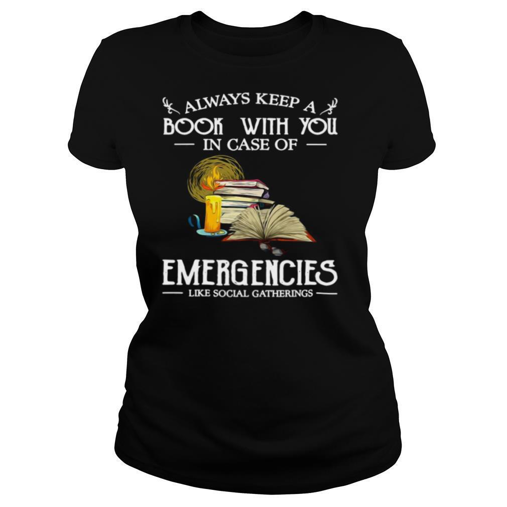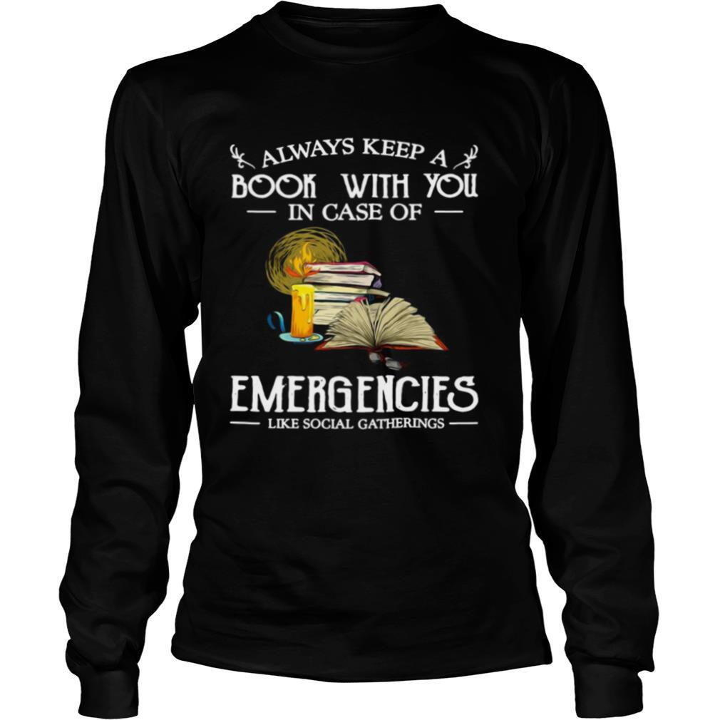 Always Keep A Book With You In Case Of Emergencies Like Social Gatherings shirt, hoodie, sweater, longsleeve and ladies t-shirt